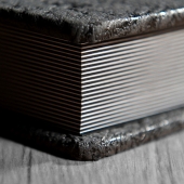 Az oldalak arany és ezüst bevonatát kizárólag kézzel készítjük 23 karátos arany és valódi ezüst segitségével